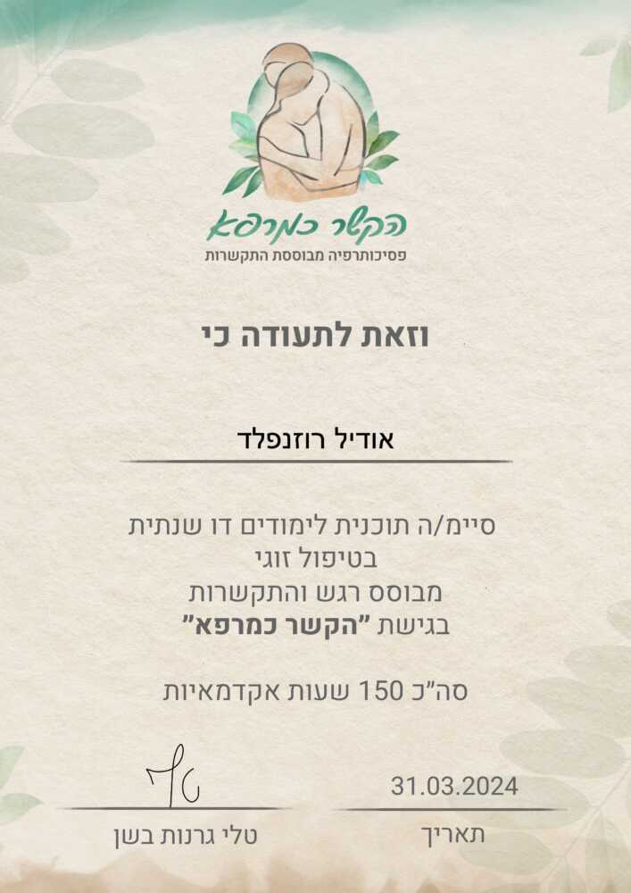 קורס בסיס בלימודי טיפול זוגי מבוסס רגש והתקשרות – טלי גרנות